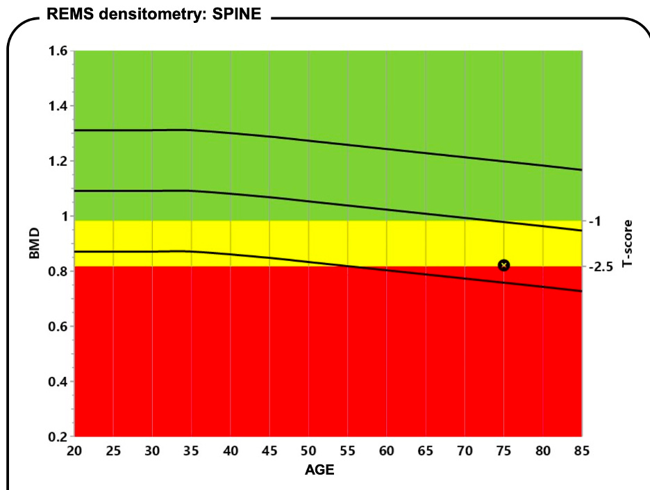 The REMS test (Radiofrequency Echographic Multi Spectrometry) collects the richness of the composite echo of your bones. It then compares your result to something quite useful – a collection of scores of people who: